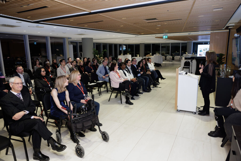 La Fondation RÉA a tenu, le 5 février, la deuxième édition de sa soirée de reconnaissance, dans le cadre élégant de la salle du 36ᵉ étage de la tour BNC à Montréal. Un moment privilégié pour célébrer l’engagement et la générosité de sa communauté.  La soirée a été animée par notre maître de cérémonie, Camille Chai, ancienne athlète et personne vivant avec un handicap, qui a été usagère des services de la Clinique Parent Plus de notre établissement CRLB.